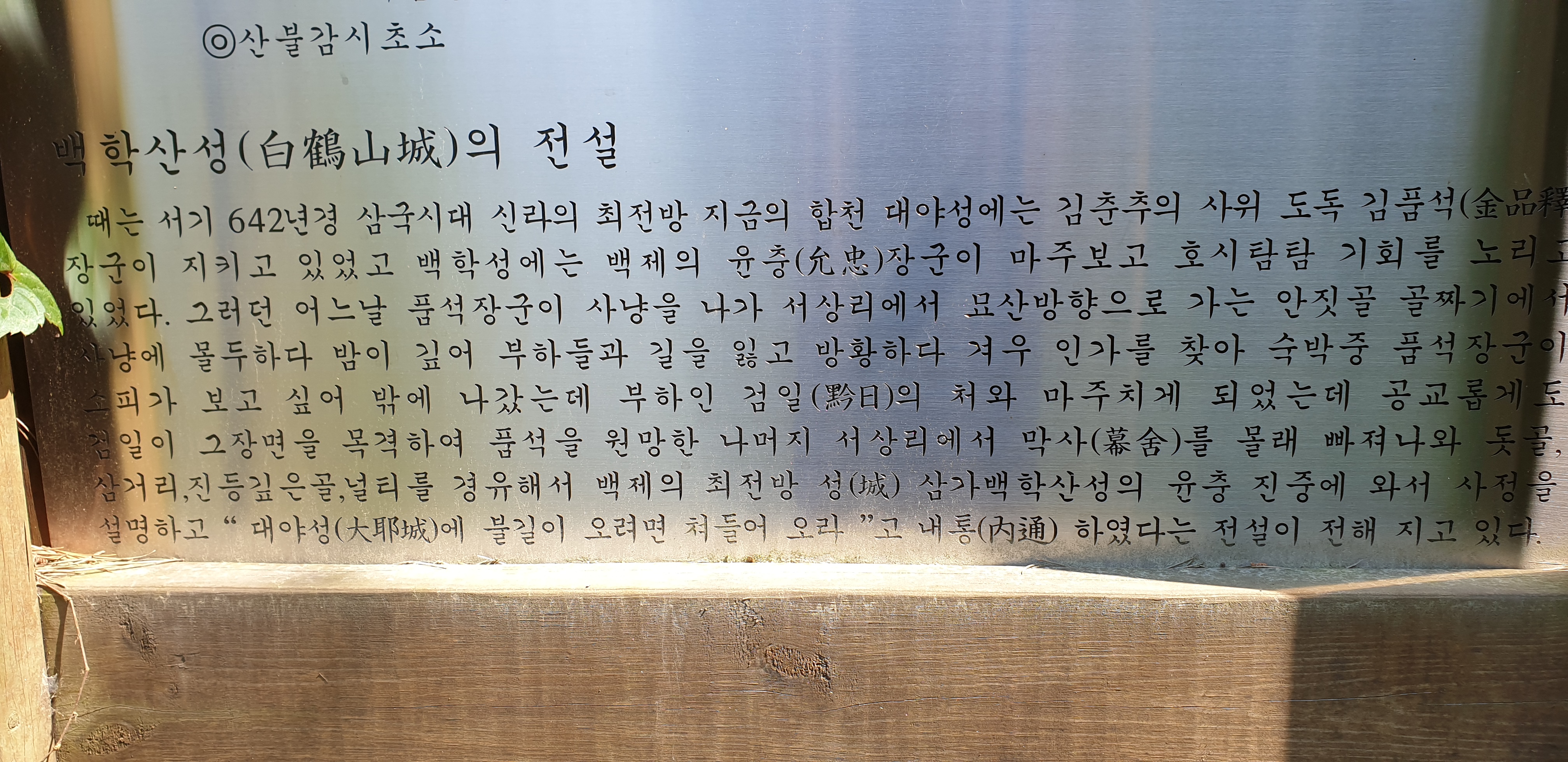 신라가 가야 땅이던 삼가 일대를 점유하고 얼마간 삼지현의 치소로 이용하였을 것으로 사료된다. 그러다가 백제와 신라 간의 영토 전쟁이 격화되자 이곳 백악산 산정으로 치소를 옮겼을 것으로 추정된다. 옛날에는 백악산으로 불리다가 최근 백학산으로 이름을 정정한 것 같다. 그래서 백학산성으로도 불린다.